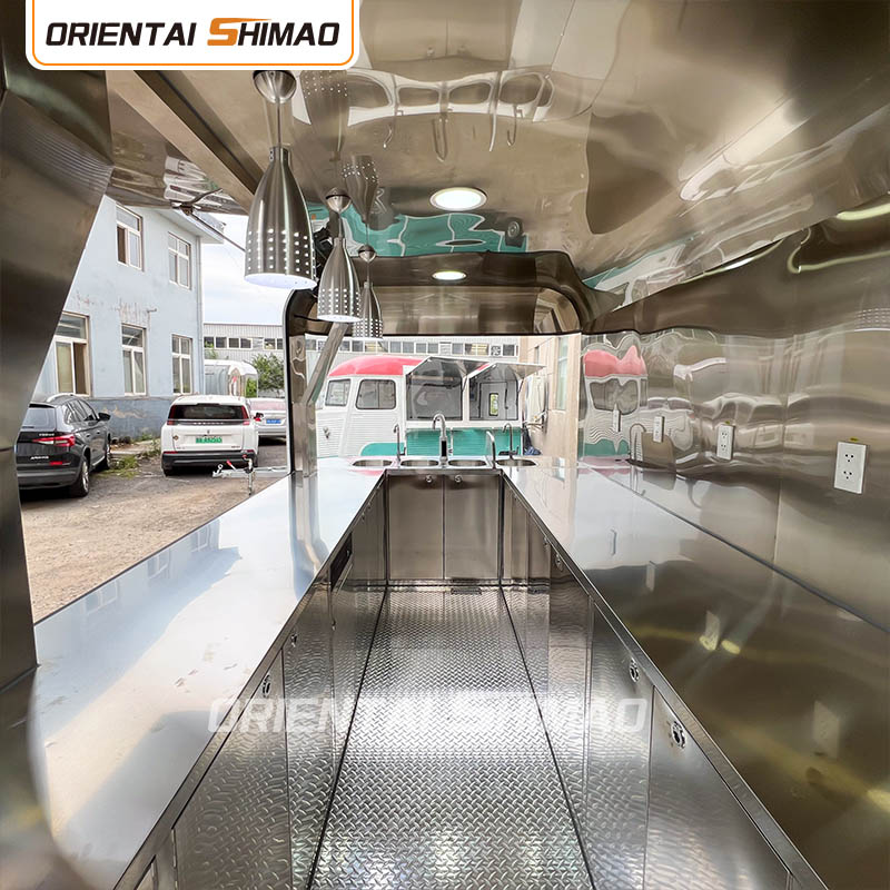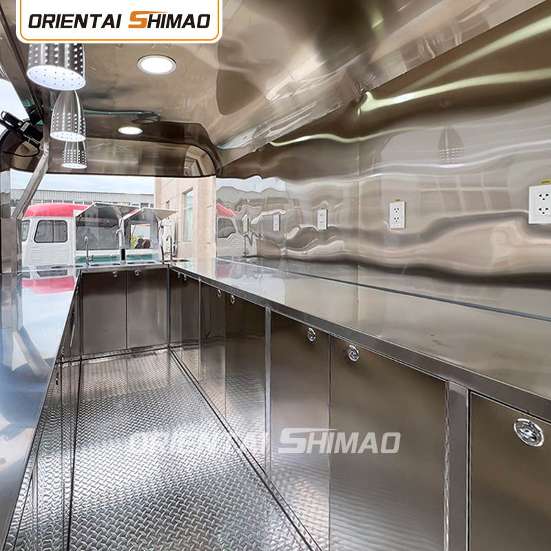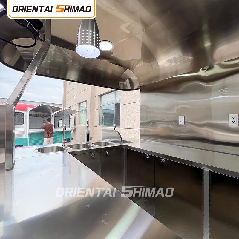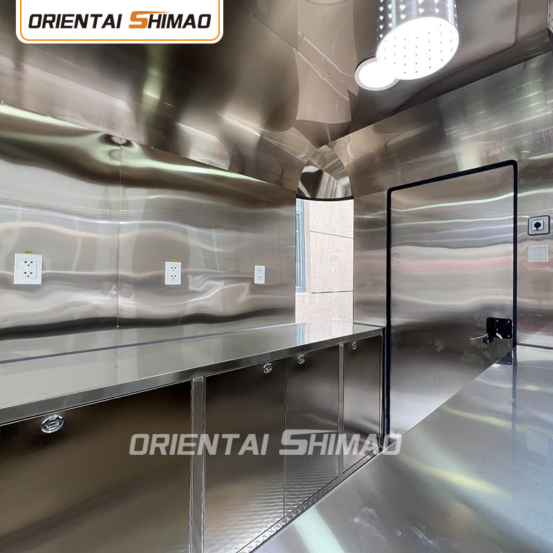 Ruostumattomasta teräksestä valmistettu sisäpuoli: Sisustus on valmistettu ruostumattomasta teräksestä, mikä varmistaa vahvan ja kestävän sisustuksen, joka on helppo puhdistaa ja huoltaa ja täyttää elintarvikehygieniastandardit. Ruostumattoman teräksen käyttö ei vain paranna ruoka-auton käyttöikää, vaan myös varmistaa ruoanvalmistusprosessin hygienian ja turvallisuuden.