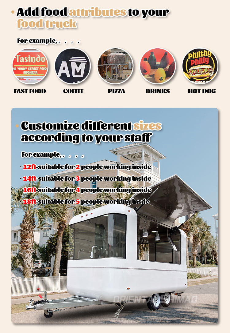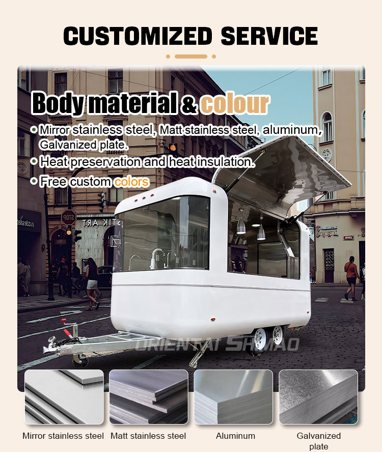 Mallinnus ja tyyli: Food truckin ulkonäön mallinnus ja tyyli on tärkeä tekijä asiakkaiden houkuttelemisessa. Se voidaan räätälöidä asiakkaiden tuotekuvan, liiketoiminnan ominaisuuksien tai henkilökohtaisten mieltymysten mukaan, kuten virtaviivainen muotoilu, retrotyyli, moderni yksinkertaisuus ja niin edelleen.