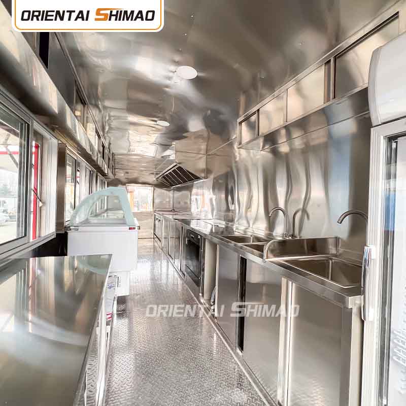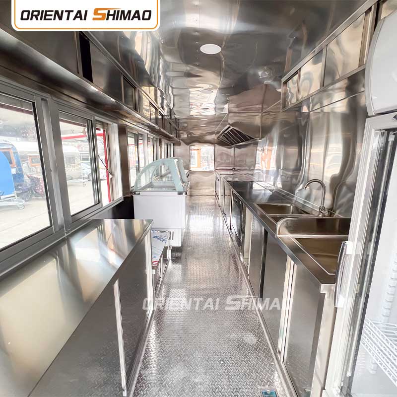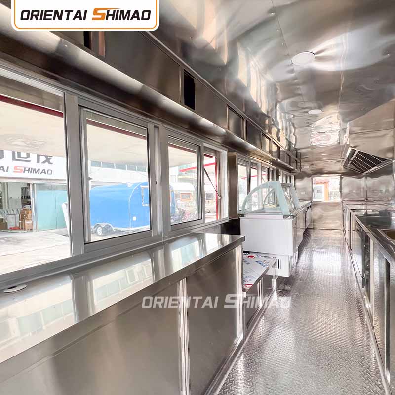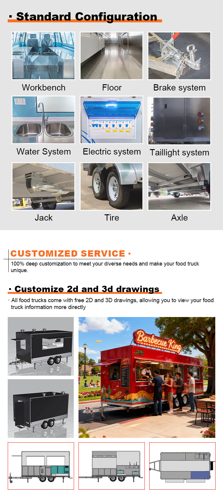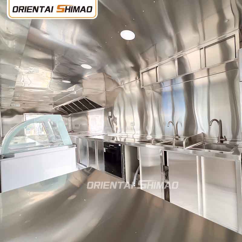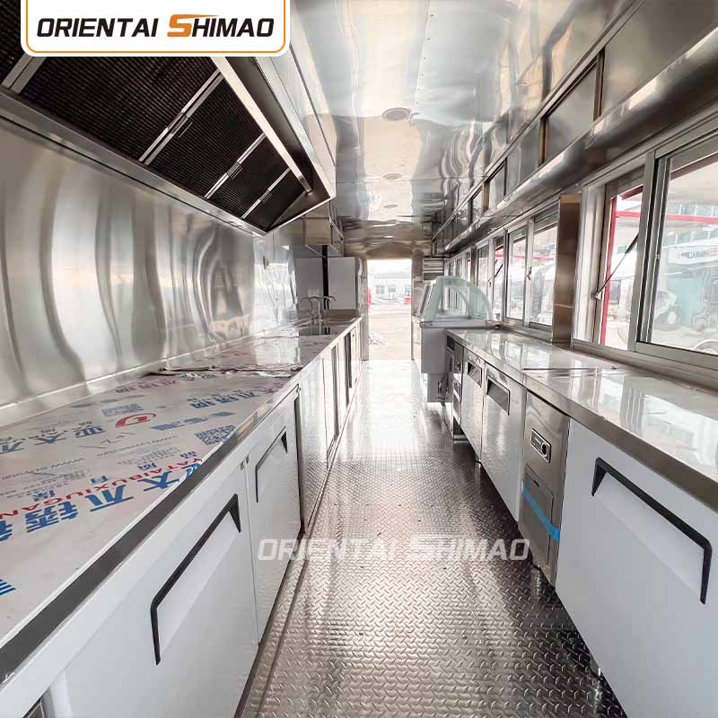 Päämateriaaliksi valitsimme korkealaatuisen ruostumattoman 304-teräksen, joka tunnetaan erinomaisesta korroosionkestävyydestään ja erinomaisesta kestävyydestään ja joka pystyy ylläpitämään vakaata suorituskykyä erilaisissa ympäristöolosuhteissa varmistaen, että Food Catering Trailers -tuotteemme voivat säilyttää erinomaisen laatunsa ja toimivuutensa myös pitkällä aikavälillä ja kohtaavat monenlaisia haasteita. 304 ruostumattoman teräksen erinomainen korroosionkestävyys, joten kuorma-autoon ei ole helppo vaikuttaa hapettumisen tai ruosteen vaikutuksiin, mikä pidentää huomattavasti sen käyttöikää. Ruostumattoman 304-teräksen erinomainen korroosionkestävyys tekee kuorma-autosta vähemmän alttiita hapettumiselle tai ruosteelle, mikä pidentää huomattavasti niiden käyttöikää.