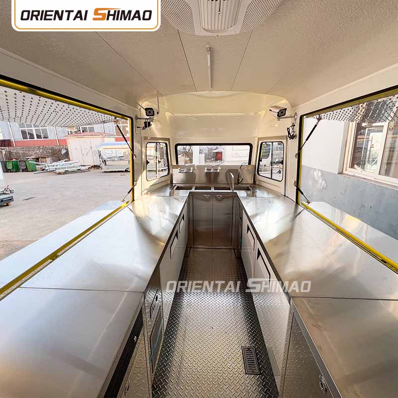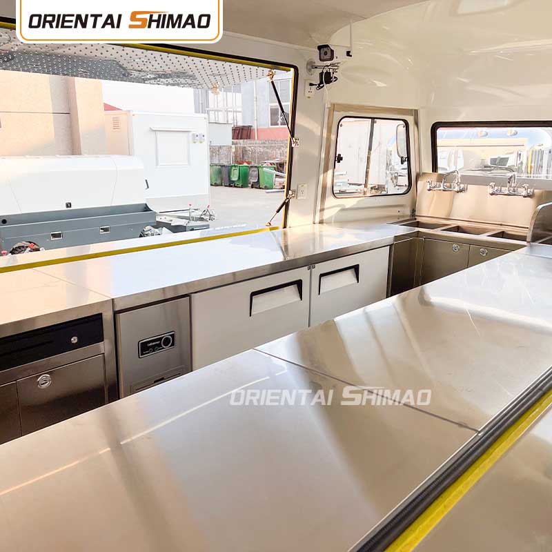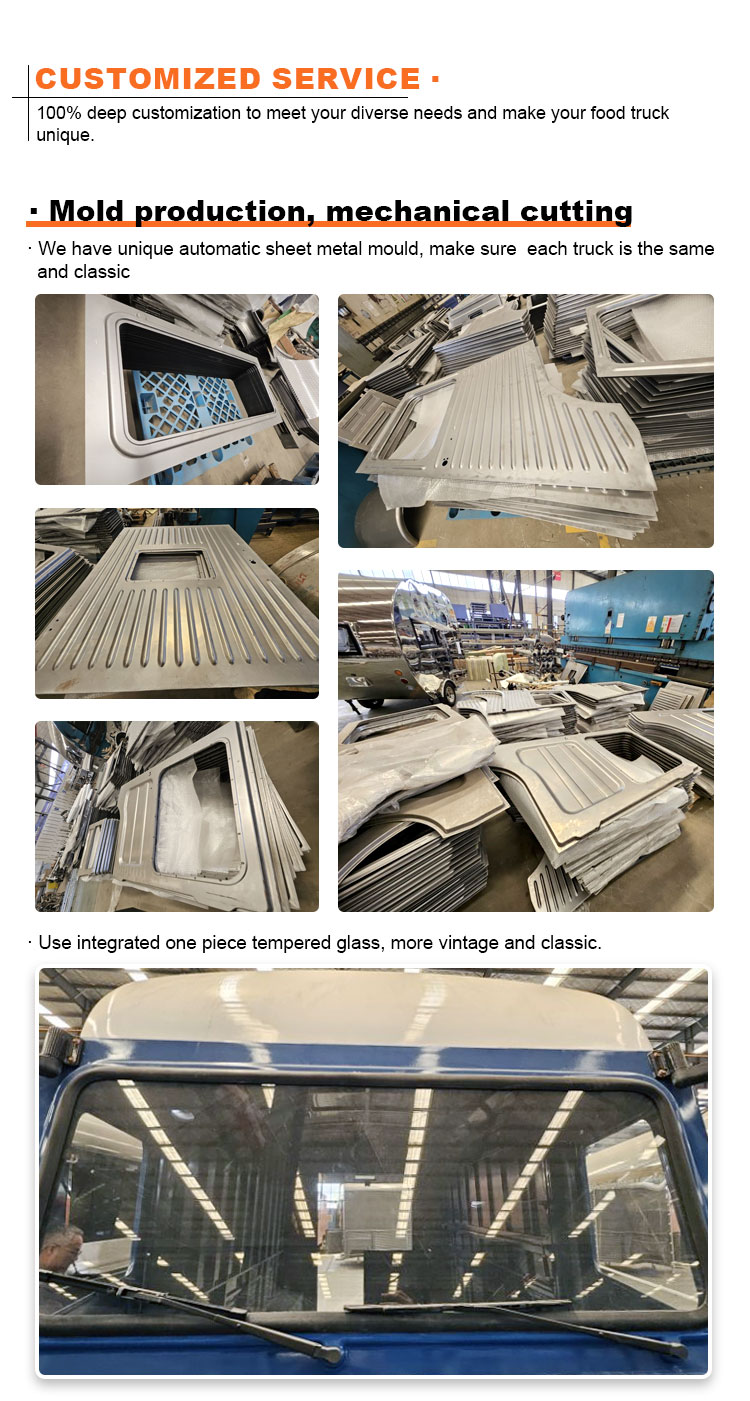 Päämateriaaliksi valitsimme korkealaatuisen ruostumattoman 304-teräksen, joka tunnetaan erinomaisesta korroosionkestävyydestään ja erinomaisesta kestävyydestään ja joka pystyy ylläpitämään vakaata suorituskykyä erilaisissa ympäristöolosuhteissa varmistaen, että Food Catering Trailers -tuotteemme voivat säilyttää erinomaisen laatunsa ja toimivuutensa myös pitkällä aikavälillä ja kohtaavat monenlaisia haasteita. 304 ruostumattoman teräksen erinomainen korroosionkestävyys, joten kuorma-autoon ei ole helppo vaikuttaa hapettumisen tai ruosteen vaikutuksiin, mikä pidentää huomattavasti sen käyttöikää. Ruostumattoman 304-teräksen erinomainen korroosionkestävyys tekee kuorma-autosta vähemmän alttiita hapettumiselle tai ruosteelle, mikä pidentää huomattavasti niiden käyttöikää.