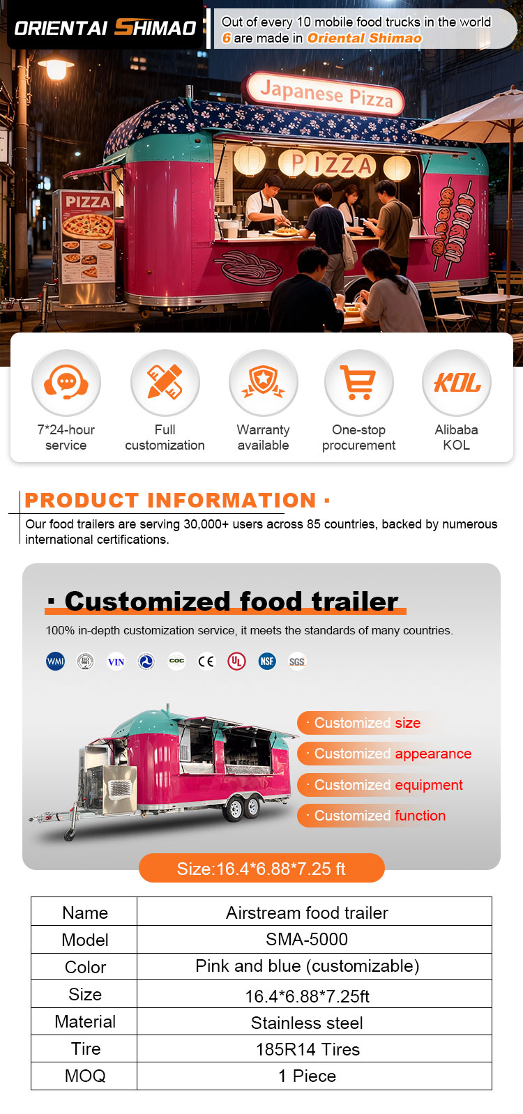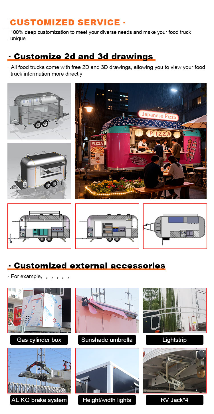 Päämateriaaliksi valitsimme korkealaatuisen ruostumattoman 304-teräksen, joka tunnetaan erinomaisesta korroosionkestävyydestään ja erinomaisesta kestävyydestään ja joka pystyy ylläpitämään vakaata suorituskykyä erilaisissa ympäristöolosuhteissa varmistaen, että Food Catering Trailers -tuotteemme voivat säilyttää erinomaisen laatunsa ja toimivuutensa myös pitkällä aikavälillä ja kohtaavat monenlaisia haasteita. 304 ruostumattoman teräksen erinomainen korroosionkestävyys, joten kuorma-autoon ei ole helppo vaikuttaa hapettumisen tai ruosteen vaikutuksiin, mikä pidentää huomattavasti sen käyttöikää. Ruostumattoman 304-teräksen erinomainen korroosionkestävyys tekee kuorma-autosta vähemmän alttiita hapettumiselle tai ruosteelle, mikä pidentää huomattavasti niiden käyttöikää.