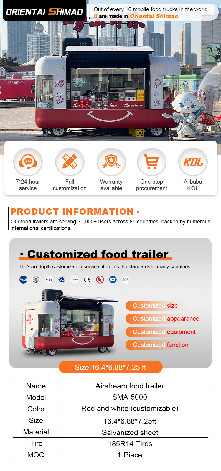 Voimme tarjota Food Catering -perävaunujen sertifikaatteja: DOT, CE, SGS, SCI, ISO, COC,