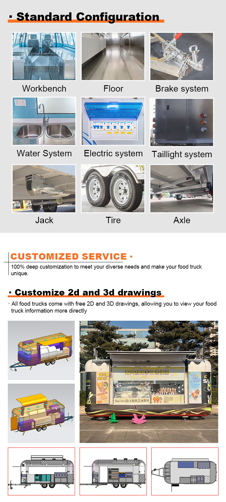 Ruokakärry Mobiili Keittiö Kaupallinen Ravintola Kalusto Catering Sähköinen Ruoka Perävaunu Katukäyttöinen ruokaauto