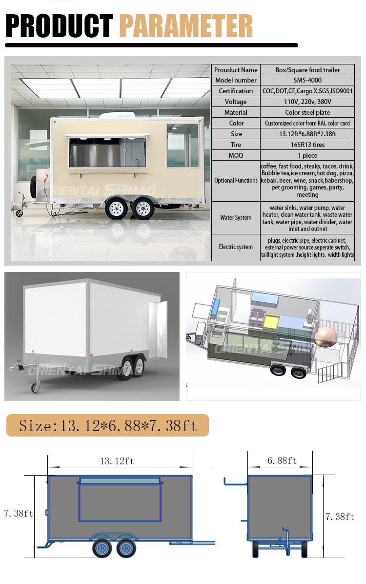Voimme tarjota siirrettäviä ruokakärryjä myyntiin sertifikaatit: DOT, CE, SGS, SCI, ISO, COC,