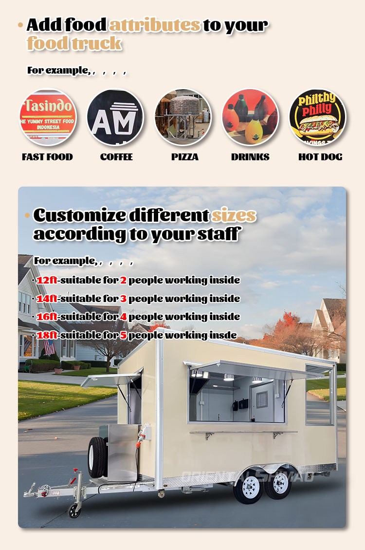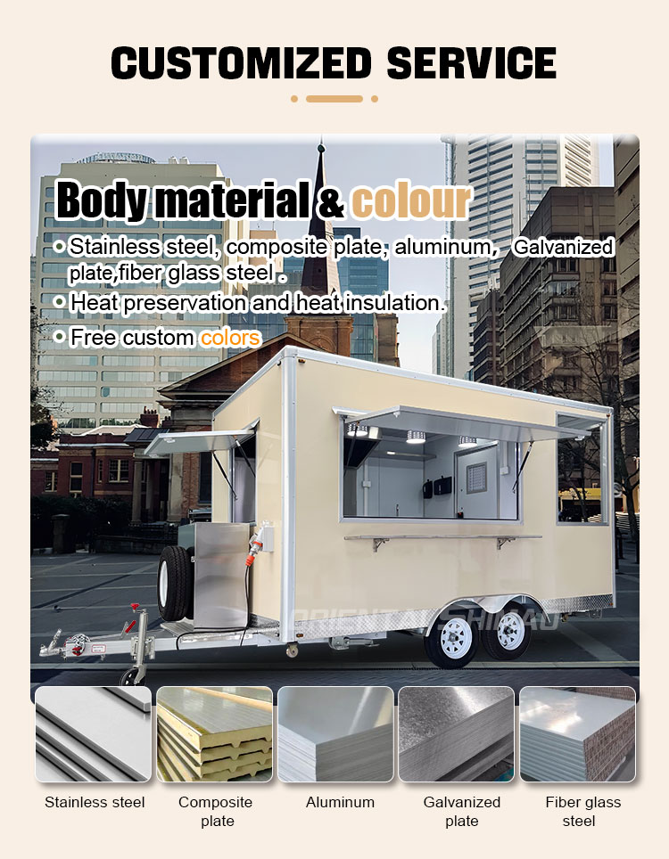 Mallinnus ja tyyli: Food truckin ulkonäön mallinnus ja tyyli on tärkeä tekijä asiakkaiden houkuttelemisessa. Se voidaan räätälöidä asiakkaiden tuotekuvan, liiketoiminnan ominaisuuksien tai henkilökohtaisten mieltymysten mukaan, kuten virtaviivainen muotoilu, retrotyyli, moderni yksinkertaisuus ja niin edelleen.