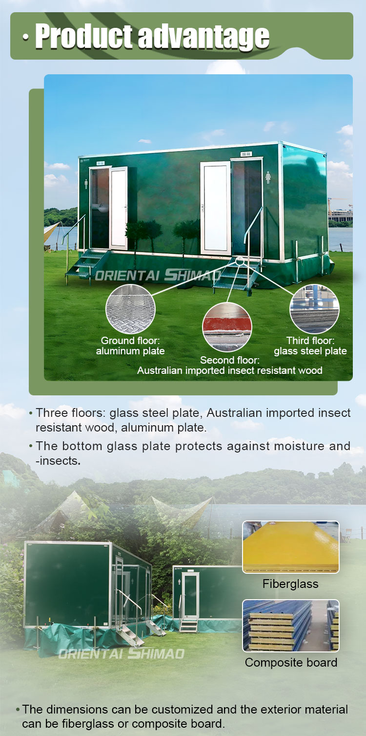 · On ympäristöystävällinen ja energiatehokas: se ottaa käyttöön vettä säästävää huuhtelutekniikkaa ja vähäenergistä valaistusjärjestelmää vähentämään merkittävästi resurssien kulutusta. Jätevesikäsittelyjärjestelmä toimii tehokkaasti ympäristölle pilaantumisen vähentämiseksi varmistaen samalla hygienian ja turvallisuuden käytön aikana.