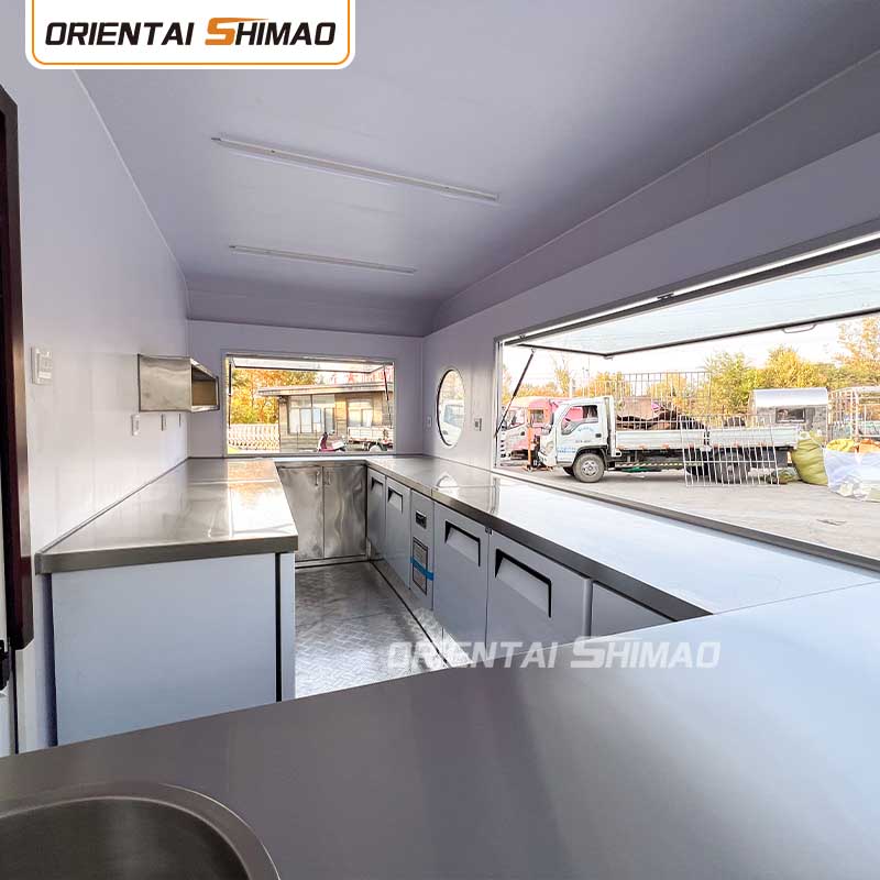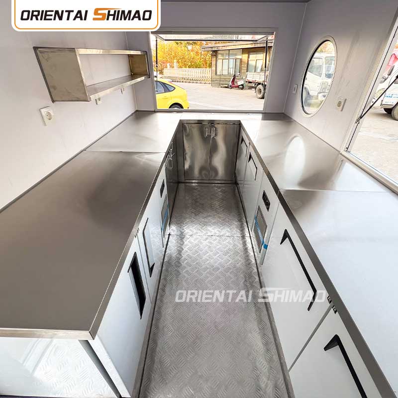 Päämateriaaliksi valitsimme korkealaatuisen ruostumattoman 304-teräksen, joka tunnetaan erinomaisesta korroosionkestävyydestään ja erinomaisesta kestävyydestään ja joka pystyy ylläpitämään vakaata suorituskykyä erilaisissa ympäristöolosuhteissa varmistaen, että Food Catering Trailers -tuotteemme voivat säilyttää erinomaisen laatunsa ja toimivuutensa myös pitkällä aikavälillä ja kohtaavat monenlaisia haasteita. 304 ruostumattoman teräksen erinomainen korroosionkestävyys, joten kuorma-autoon ei ole helppo vaikuttaa hapettumisen tai ruosteen vaikutuksiin, mikä pidentää huomattavasti sen käyttöikää. Ruostumattoman 304-teräksen erinomainen korroosionkestävyys tekee kuorma-autosta vähemmän alttiita hapettumiselle tai ruosteelle, mikä pidentää huomattavasti niiden käyttöikää.