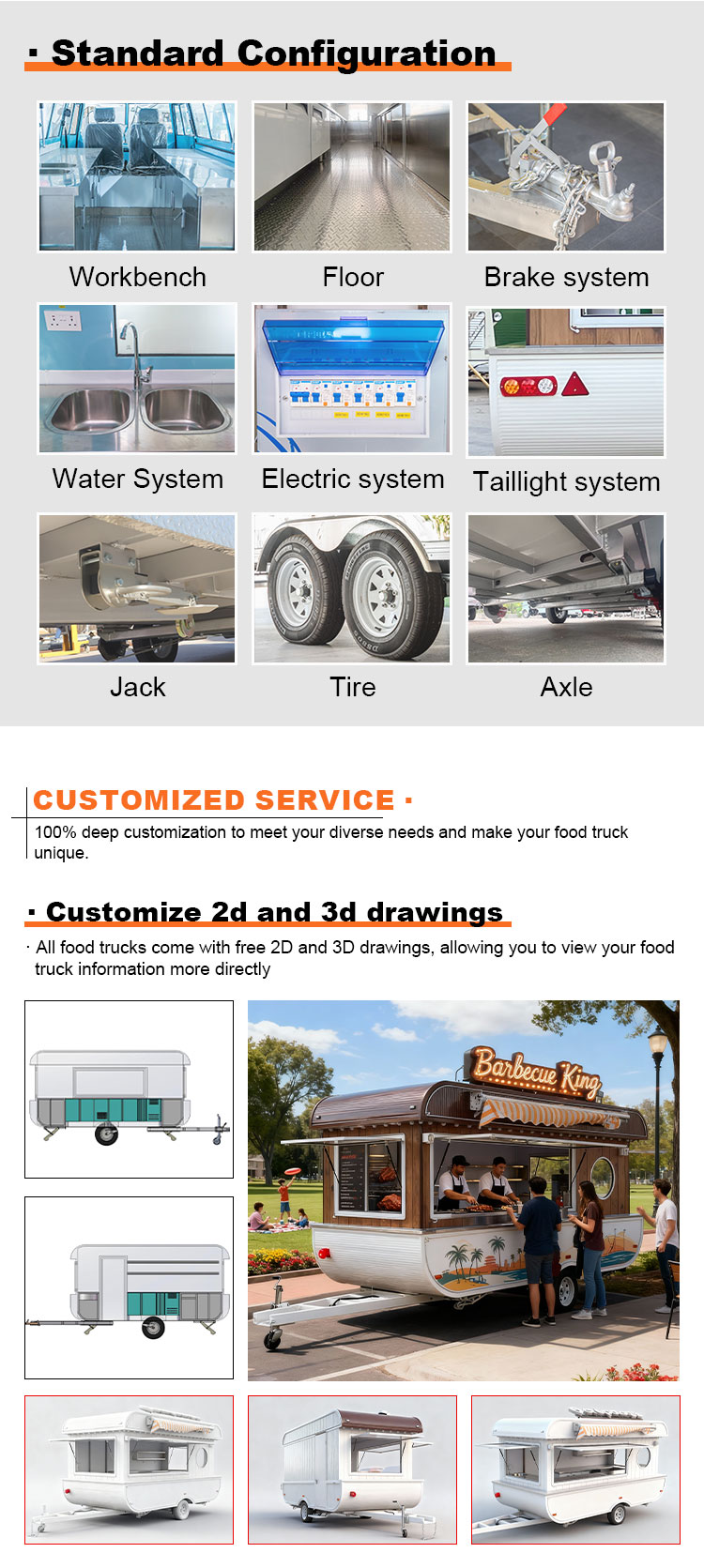 Ruokakärry Mobiili Keittiö Kaupallinen Ravintola Kalusto Catering Sähköinen Ruoka Perävaunu Katukäyttöinen ruokaauto