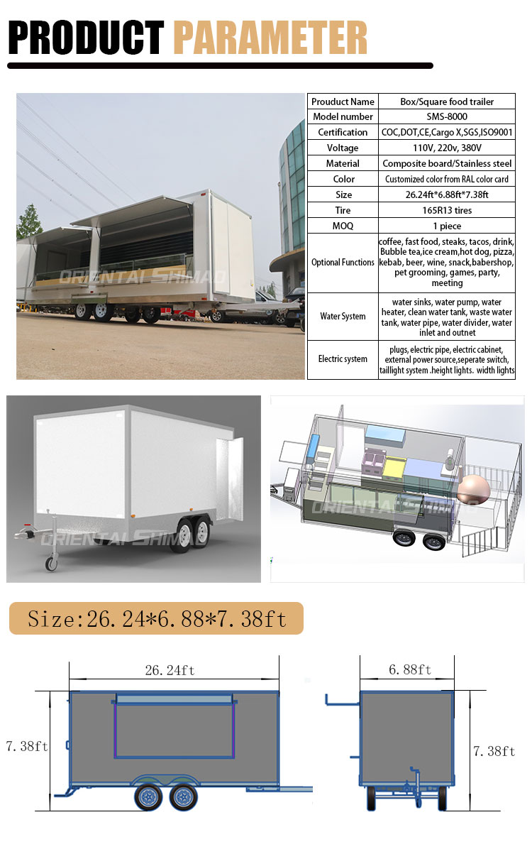 Vielä tärkeämpää on, että Oriental Shimao -ruokailun trailerin ruostumattomasta teräksestä valmistettu joustava ja monipuolinen liiketoimintalähestymistapa on täydellisesti sopeutunut modernin elämän nopeasti muuttuvaan vauhtiin. Riippumatta siitä, onko kyse lounas kiireestä liiketoiminta -alueella tai vapaa -ajan illalla, se voi nopeasti säätää strategiaansa vastaamaan eri ihmisten eri aikoina. Tämä ennennäkemätön sopeutumiskyky ei vain tee itämaista Shimao -ruokaperävaunua ruostumattomasta teräksestä erottuvan erittäin kilpailukykyisillä catering -markkinoilla, vaan tekee siitä myös tärkeän voiman, joka ajaa innovaatioita ja asettaa alan suuntauksia.