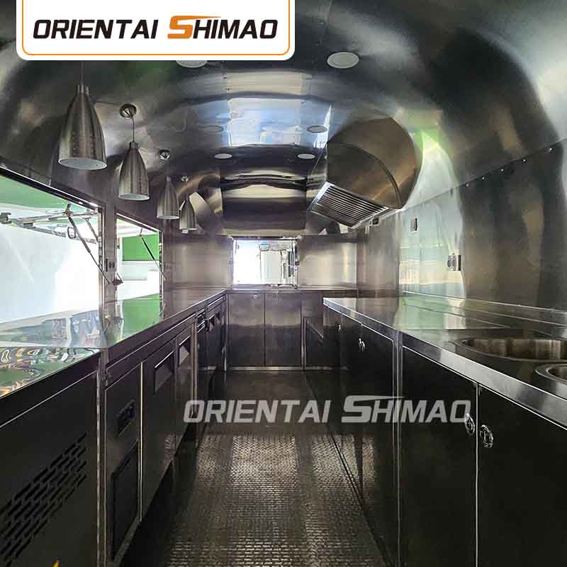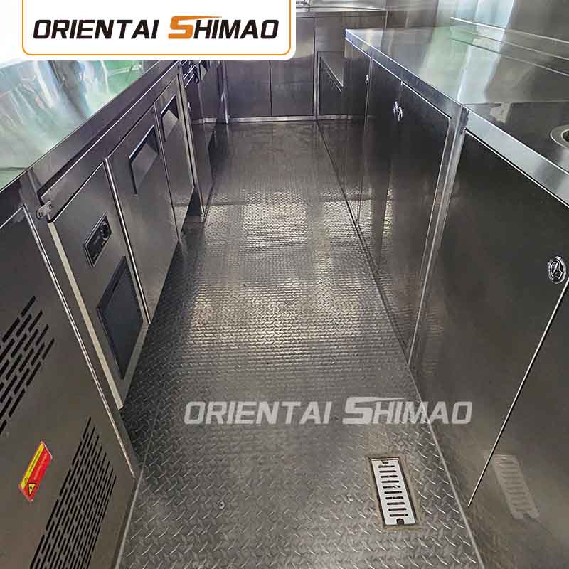 Päämateriaalia varten valitsimme korkealaatuisen 304 ruostumattoman teräksen, joka tunnetaan erinomaisesta korroosionkestävyydestään ja erinomaisesta kestävyydestään, ja pystyy ylläpitämään vakaata suorituskykyä monissa ympäristöolosuhteissa varmistaen, että mukautetut ruokaperävaunutuotteemme voivat ylläpitää erinomaista laatua ja toiminnallisuuttaan jopa pitkällä aikavälillä ja kohdata monenlaisia haasteita. 304 Ruostumattoman teräksen erinomainen korroosiokestävyys, niin että hapettuminen tai ruoste ei vaikuta mukautettuun ruokatraileriin, mikä pidentää sen käyttöiän huomattavasti. 304 ruostumattoman teräksen erinomainen korroosionkestävyys tekee räätälöityistä ruokaperävaunuista vähemmän alttiita hapettumiselle tai ruosteelle, pidentäen huomattavasti niiden käyttöikäisiä.