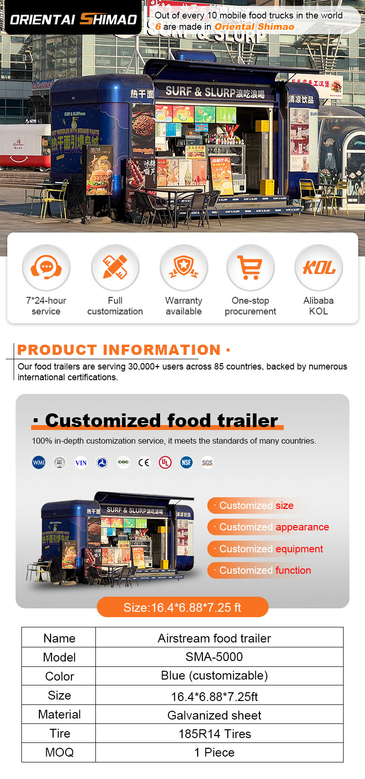 Voimme tarjota Food Catering -perävaunujen sertifikaatteja: DOT, CE, SGS, SCI, ISO, COC,
