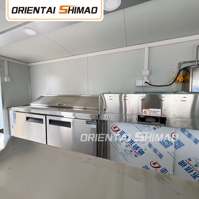 Sisäisen rakenteen suunnittelussa osoitamme myös poikkeuksellista ammattitaitoa. Ainutlaatuinen nivelprosessi muodostaa saumattoman yhteyden seinän ja työpöydän välille, tämä muotoilu ei vain paranna yleistä estetiikkaa, vaan myös yksinkertaistaa huomattavasti puhdistustyötä ilman liiman, kuten liiman, käyttöä, välttäen ongelmat, kuten avoimen liiman, värjäytymisen ja samalla myös vähentäen lian mahdollisuutta, luoden puhtaamman työympäristön ja siistimmän työympäristön. Tämä huomio yksityiskohtiin ja hallintaan on avain Oriental Shimao Franchise-valmis ruokaperävaunujen kykyyn erottua kilpailluilla markkinoilla.