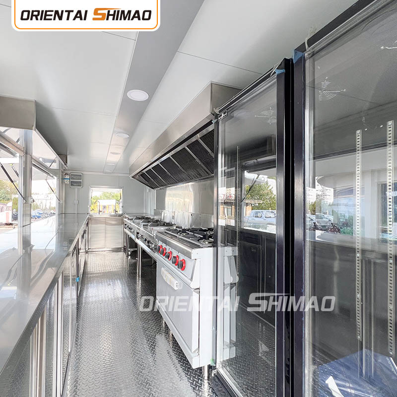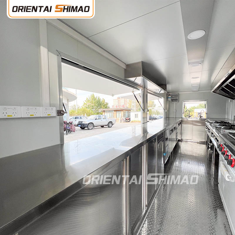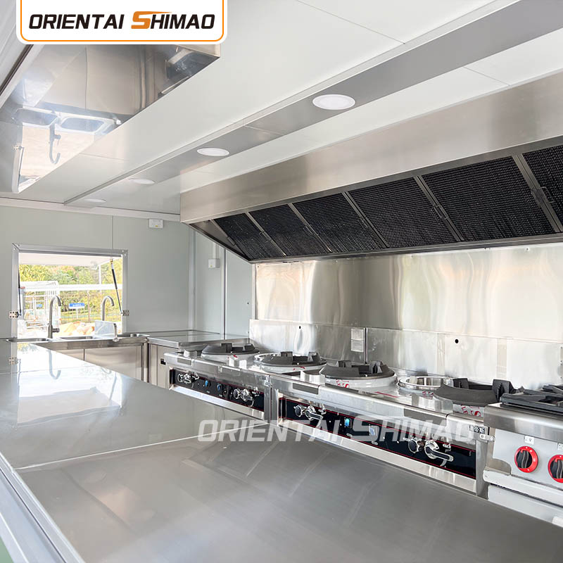 Ruostumattomasta teräksestä valmistettu sisäpuoli: Sisustus on valmistettu ruostumattomasta teräksestä, mikä varmistaa vahvan ja kestävän sisustuksen, joka on helppo puhdistaa ja huoltaa ja täyttää elintarvikehygieniastandardit. Ruostumattoman teräksen käyttö ei vain paranna ruoka-auton käyttöikää, vaan myös varmistaa ruoanvalmistusprosessin hygienian ja turvallisuuden.