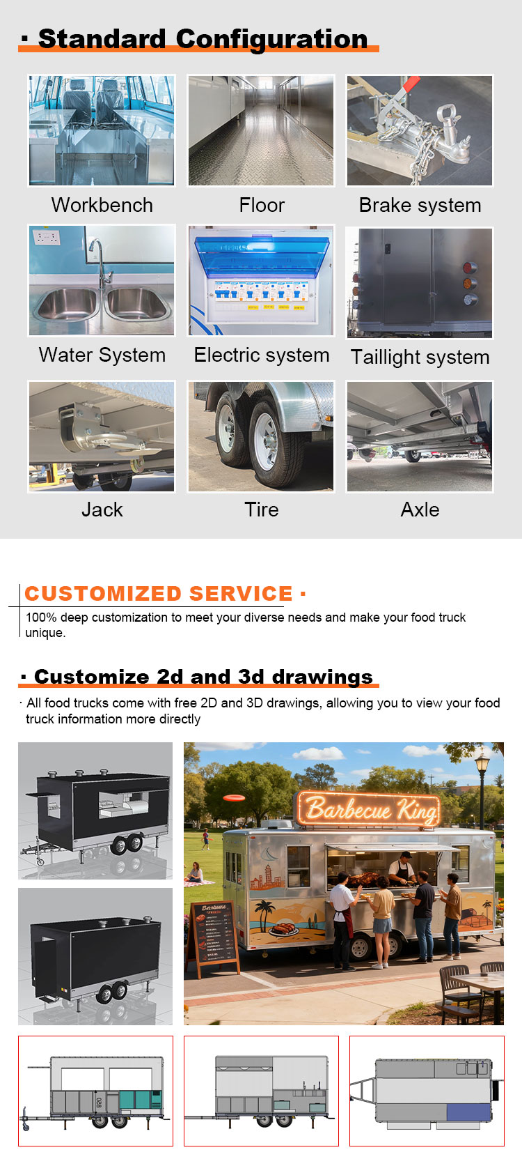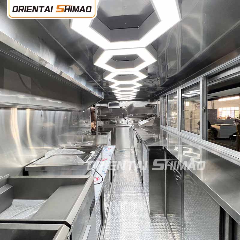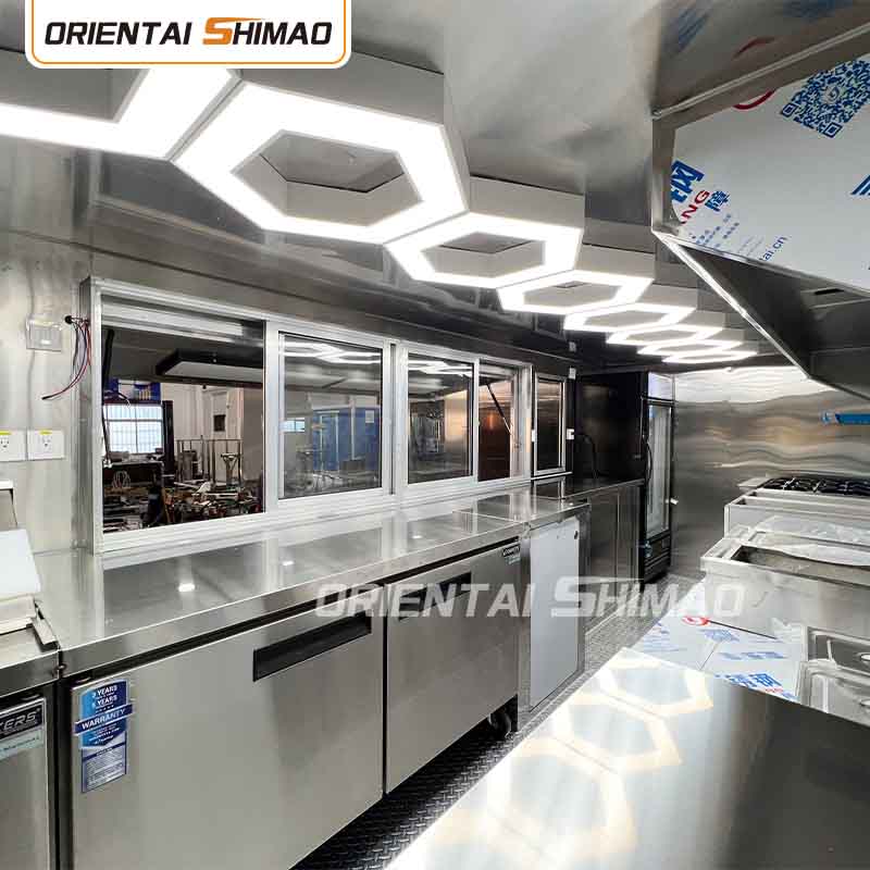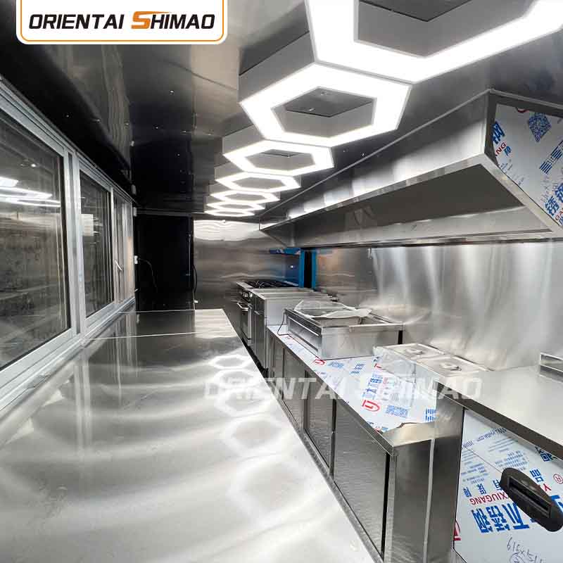 Päämateriaaliksi valitsimme korkealaatuisen 304 ruostumattoman teräksen, joka tunnetaan erinomaisesta korroosionkestävyydestään ja erinomaisesta kestävyydestään ja joka pystyy ylläpitämään vakaata suorituskykyä erilaisissa ympäristöolosuhteissa varmistaen, että Mobile Food Truck Trailer -tuotteemme voivat säilyttää erinomaisen laatunsa ja toimivuutensa myös pitkällä aikavälillä ja kohtaavat monenlaisia haasteita. 304 ruostumattoman teräksen erinomainen korroosionkestävyys, joten kuorma-autoon ei ole helppo vaikuttaa hapettumisen tai ruosteen vaikutuksiin, mikä pidentää huomattavasti sen käyttöikää. Ruostumattoman 304-teräksen erinomainen korroosionkestävyys tekee kuorma-autosta vähemmän alttiita hapettumiselle tai ruosteelle, mikä pidentää huomattavasti niiden käyttöikää.