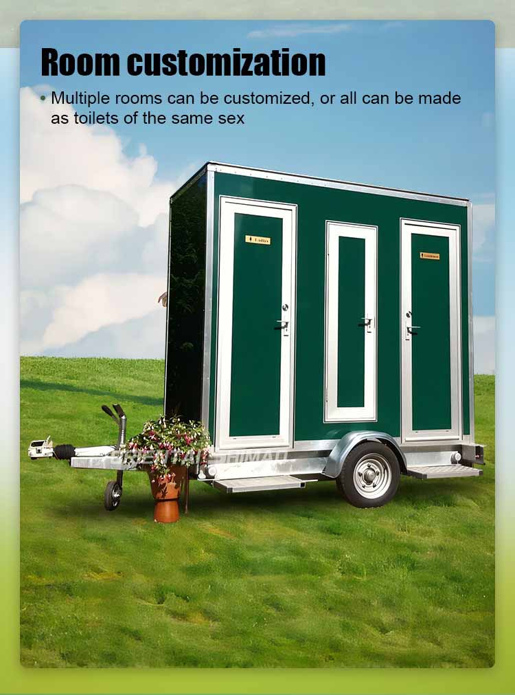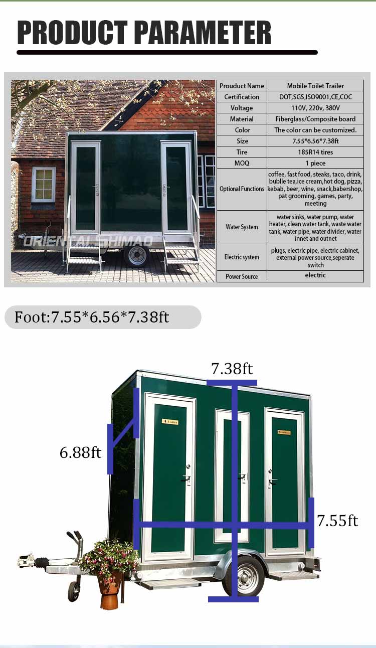 · Tehokas mobiili suorituskyky: Tämä mobiili wc-talo on varustettu korkean suorituskyvyn renkailla ja vahvistetulla jousitusjärjestelmällä sen varmistamiseksi