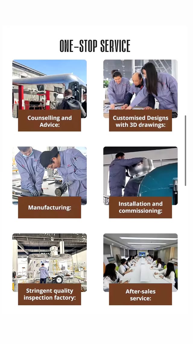 Vuosien alan kokemuksella ja vakiintuneella tuotantojärjestelmällämme tehtaallamme on kehittyneet tuotantolaitokset ja ammattitaitoinen tekninen tiimi. Pystymme räätälöimään ruokaperävaunut eri alueellisten määräysten ja markkinoiden vaatimusten mukaan. Kahviperävaunuista ja pikaruokayksiköistä täysin varustettuihin siirrettäviin keittiöihin tarjoamme kattavan tuen suunnittelusta ja valmistuksesta lopulliseen toimitukseen.